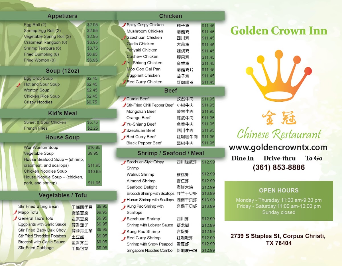 All are served with fried rice or steamed rice.